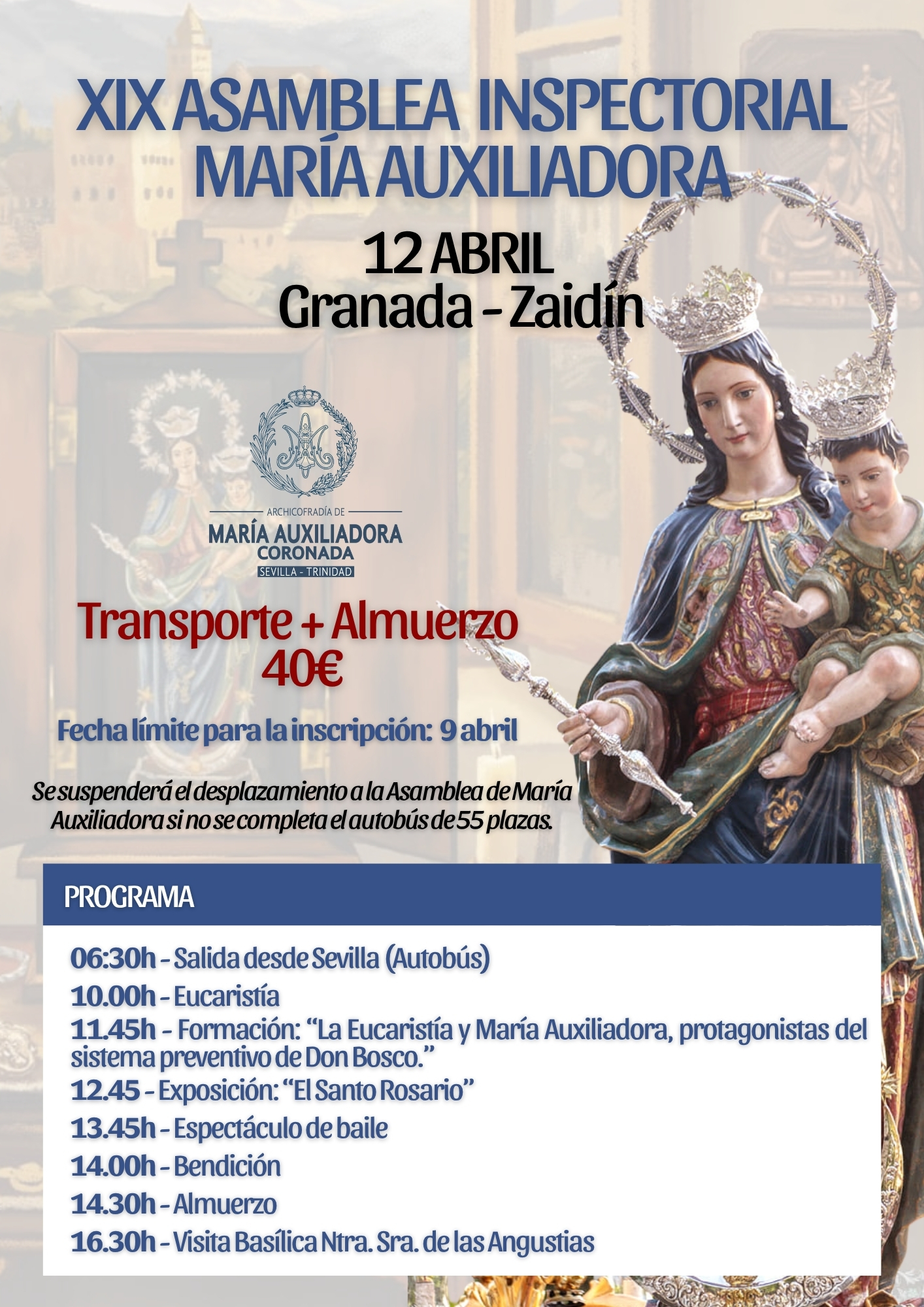 La Archicofradía de María Auxiliadora Coronada asistirá a la XIX Asamblea Inspectorial de María Auxiliadora en Granada-Zaidín Leer más » 24/03/2026